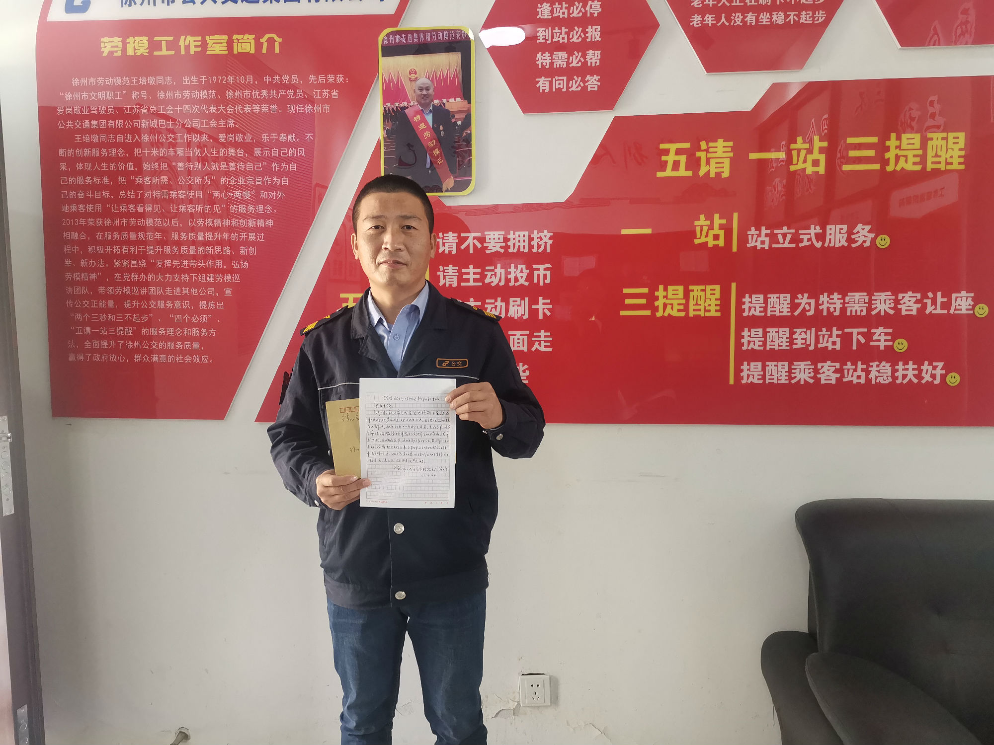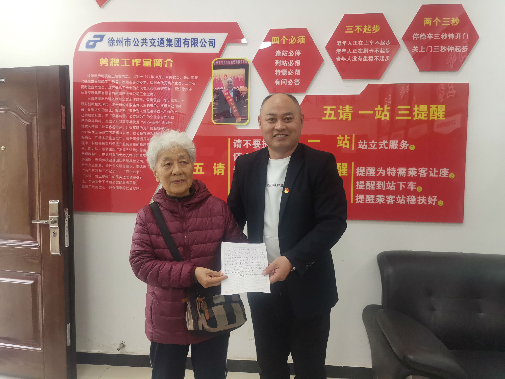 10月28日下午,一位滿頭銀發(fā)的老人拿著一封親手寫的感謝信來(lái)到了徐州公交新城公司,老人說(shuō):“有一位駕駛員,經(jīng)常幫助我和老伴,但我不知道他叫什么,只知道他在46路2750號(hào)公交車。”經(jīng)核實(shí),正是46路公交駕駛員郭開(kāi)明師傅。