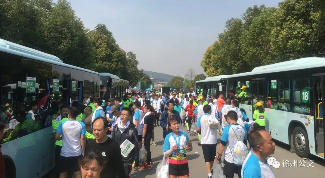 為做好后勤保障工作,大賽當(dāng)天,公司安排了238臺公交車分布在湖北路體育中心、新城區(qū)奧體中心、中國礦業(yè)大學(xué)南湖校區(qū)三個比賽點(diǎn),為“徐馬”護(hù)航。其中, 70臺車負(fù)責(zé)運(yùn)動員接駁,40臺車負(fù)責(zé)運(yùn)動員存放衣服,10臺車負(fù)責(zé)運(yùn)動員比賽中途出現(xiàn)突發(fā)情況時進(jìn)行收容,其余100余輛車負(fù)責(zé)接送志愿者。