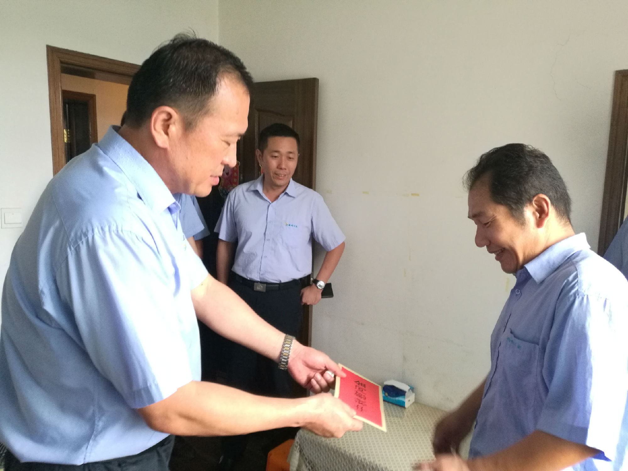 中秋節(jié)前夕,市交通運(yùn)輸局領(lǐng)導(dǎo)和有限公司領(lǐng)導(dǎo)分別到公司困難職工家中慰問,送去節(jié)日的祝福和溫暖。