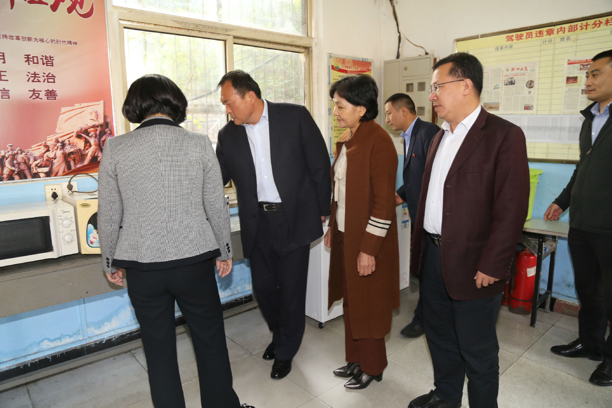 10月24日下午,市政協(xié)副主席張耀環(huán)帶領(lǐng)工會界別部分委員,來到公交建筑學院調(diào)度室“公交愛心驛站”站點,視察我市戶外工作者服務(wù)站點建設(shè)情況。市政協(xié)常委、市總工會副主席劉洪印出席活動,市交通運輸局工會主席王培河、公司董事長、總經(jīng)理杜紅軍陪同視察。
