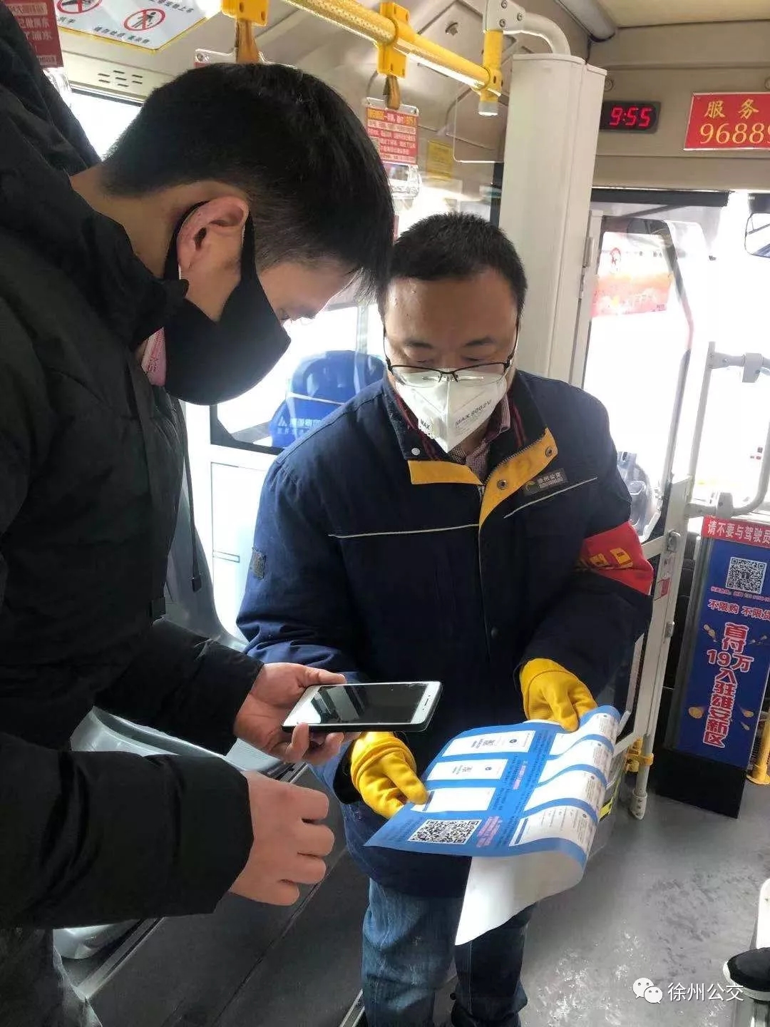 2月12日早上5點,各級管理人員分組到達各始發(fā)站進行早發(fā)車,測量復工人員體溫,車輛消毒,叮囑駕駛員嚴格按照集團要求行駛,注意行車安全,并跟隨首班車,查看線路營運情況。發(fā)車前,駕駛員佩戴好口罩、護目鏡,對車輛進行消毒,重點對踏板、地板、拉手、投幣口進行全覆蓋消殺,并打開車門、車窗進行通風換氣,跟車人員準備好體溫劑,做好乘客的體溫測試工作。在高鐵上客站、淮西客運站、徐州站等地,管理人員協(xié)助駕駛員監(jiān)督乘客是否佩戴口罩,進行體溫測試;引導市民掃碼乘車進行實名登記;主動宣傳禁止攜帶易燃易爆物品以及活禽上車;疏導乘客“錯位就坐”,叮囑乘客保持安全乘車距離。運營期間,所以公交車全程打開車窗和頂部天窗,每臺車的前車門處標注滿載率,滿員以后不再接納新乘客上車,并嚴格執(zhí)行“一趟一清掃”“一趟一消毒”制度,做好消毒記錄,做到規(guī)范防控。