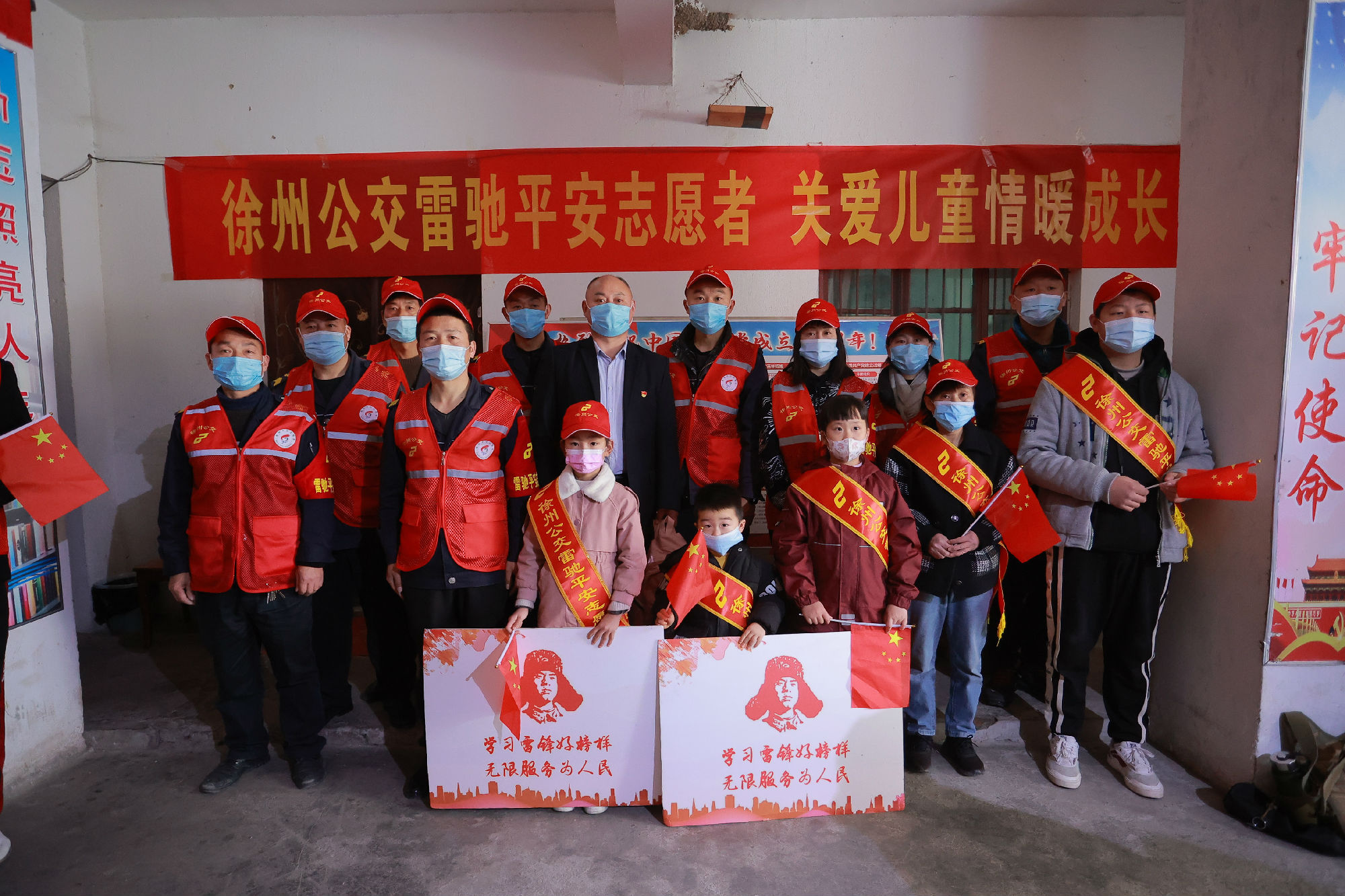 雷馳平安志愿者們來到徐州市云龍區(qū)大龍湖街道崔莊社區(qū)繼發(fā)愛心輔導(dǎo)站,為這里的留守兒童送去愛心。活動(dòng)現(xiàn)場(chǎng),繼發(fā)愛心輔導(dǎo)站的翟老師講述了他長期幫扶留守兒童的經(jīng)歷,特邀嘉賓全國道德模范孟慶喜同志講述了雷鋒故事,所有志愿者舉起右手莊嚴(yán)地宣誓志愿精神……接著,雷馳隊(duì)員向留守兒童們送去了書包、輔導(dǎo)書籍、文具用品、玩具等物品,孩子們臉上洋溢著幸福的微笑,紛紛表示:一定要好好學(xué)習(xí),向雷鋒叔叔學(xué)習(xí)。志愿者與孩子們親切交談,與孩子們一起合唱《學(xué)習(xí)雷鋒好榜樣》,志愿活動(dòng)在歡快的歌聲中結(jié)束。