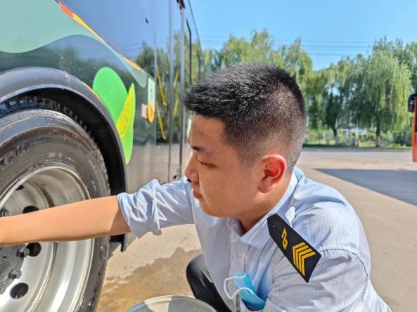 開朗的他說:“603路線路比較長,經(jīng)過修路路段比較多,車身、輪胎容易臟,每次到站休停,我都會重新把車輪擦一遍,再把車內(nèi)衛(wèi)生打掃一遍,最近天氣比較熱,每次干完活渾身像洗了澡,但既然干了這個工作,就要擔起責任,努力為市民提供舒適的乘車環(huán)境。”