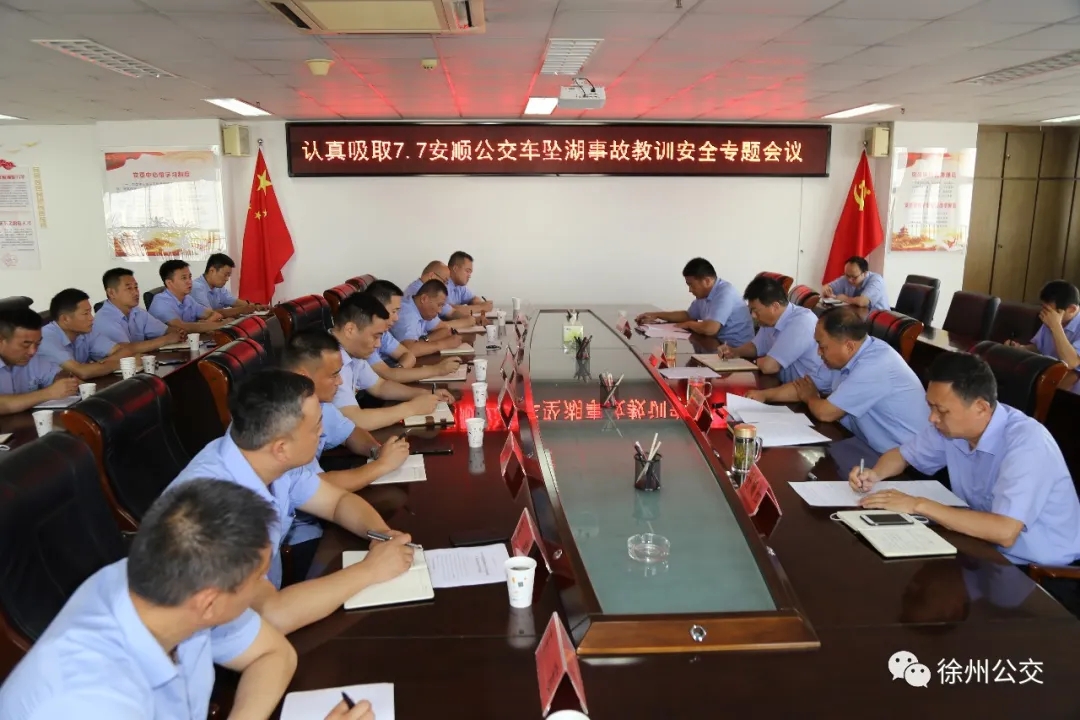 為吸取“7·7”安順公交車墜湖事故教訓(xùn),認(rèn)真貫徹落實習(xí)近平總書記關(guān)于安全生產(chǎn)重要論述,按照市委、市政府安全生產(chǎn)專項整治三年行動方案及市交通運輸局、市交通控股集團相關(guān)要求,7月10日,徐州公交集團召開了認(rèn)真吸取“7·7”安順公交車墜湖事故教訓(xùn)安全專題會議。集團總經(jīng)理馮陸陸,常務(wù)副總經(jīng)理蔣成彪,調(diào)研員王遠慶以及各營運公司經(jīng)理、安全經(jīng)理和機關(guān)、直屬單位負責(zé)人參加了會議。