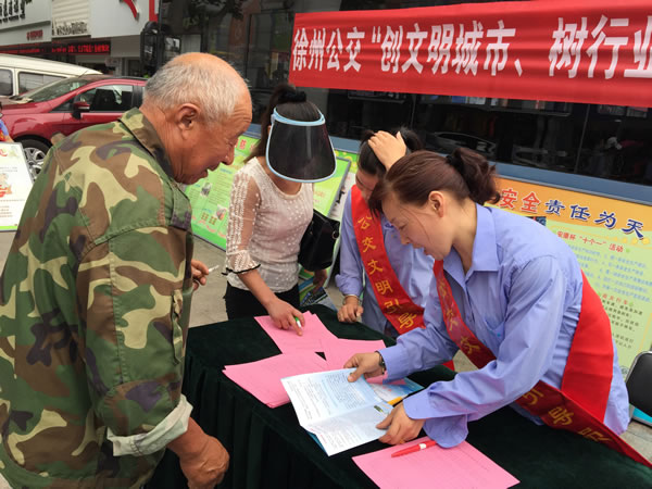 616上午,賈汪公司組織駕乘人員身披綬帶,在賈汪區(qū)中心步行街開展“創(chuàng)文明城市,樹行業(yè)新風(fēng)”便民咨詢活動(dòng),發(fā)放《徐州公交乘車指南》,征求市民建議和意見,受到廣大市民好評(píng)。