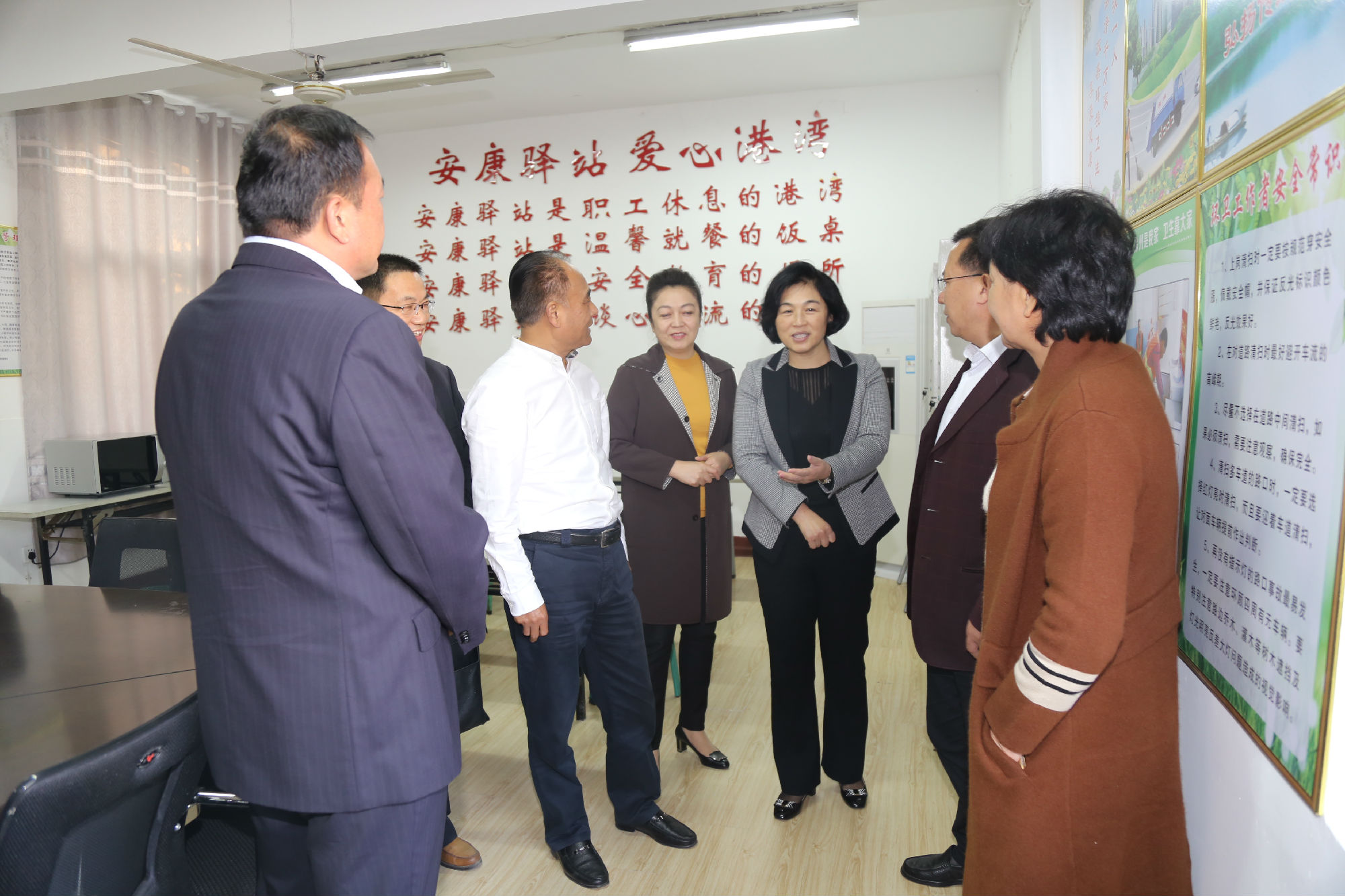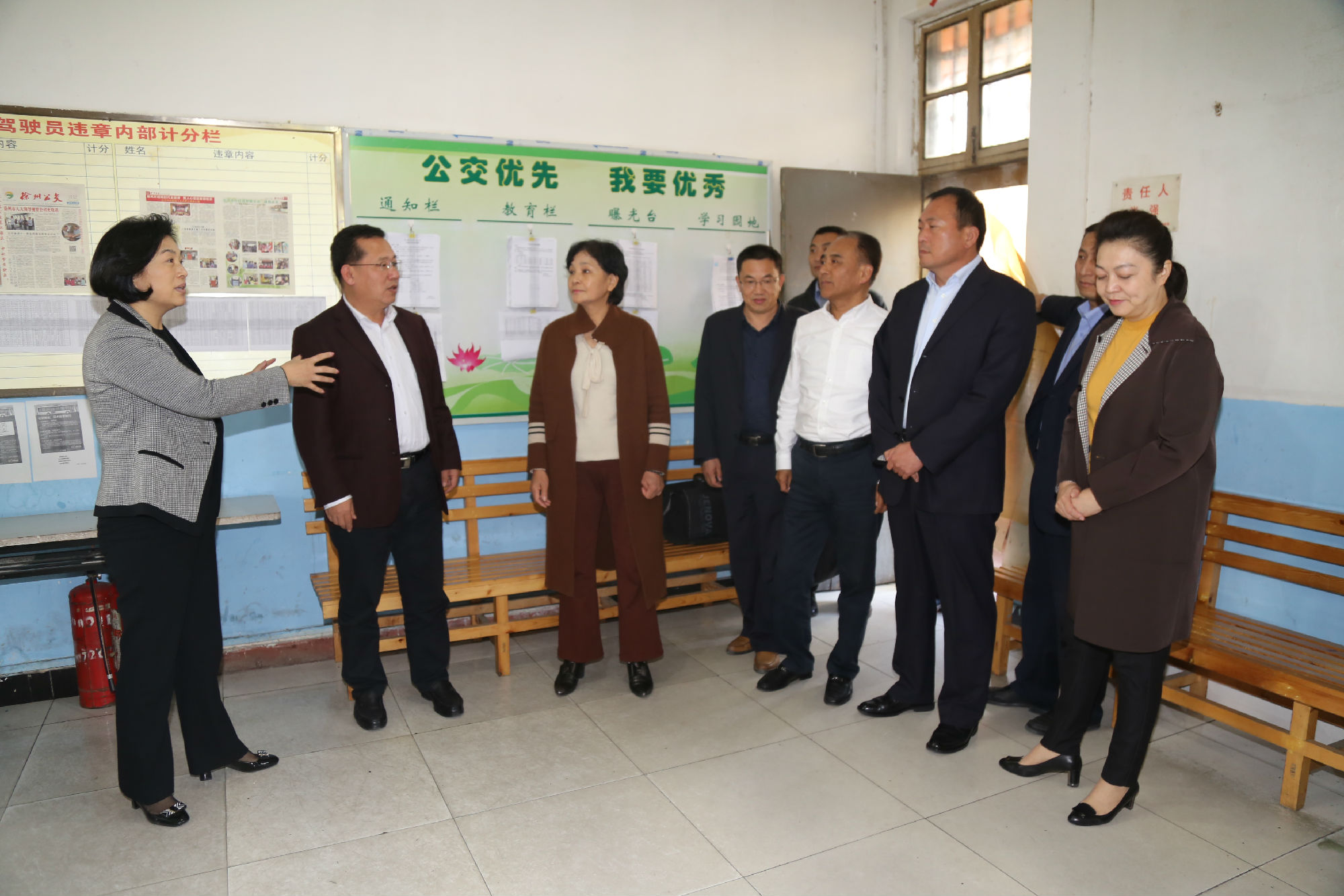 10月24日下午,市政協(xié)副主席張耀環(huán)帶領(lǐng)工會界別部分委員,來到公交建筑學院調(diào)度室“公交愛心驛站”站點,視察我市戶外工作者服務(wù)站點建設(shè)情況。市政協(xié)常委、市總工會副主席劉洪印出席活動,市交通運輸局工會主席王培河、公司董事長、總經(jīng)理杜紅軍陪同視察。